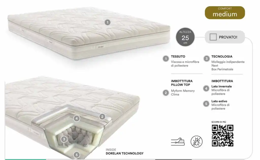 Note: Portanza Media. Rivestimento con Trattamento Antibatterico e Antiacaro, sfoderabile e lavabile in lavatrice.  Dispositivo Medico Detraibile.