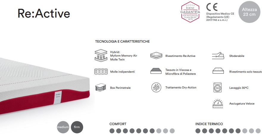 Reactive Dorelan - materasso memory - rivestimento traspirante sfoderabile e lavabile - Gambarotto Materassi (1)reactive dorelan - gambarotto materassi